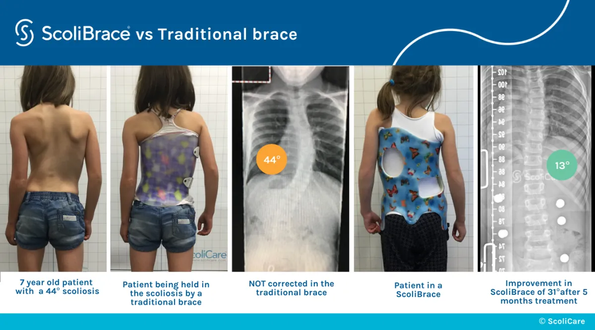 Gently guides the growing spine toward a straighter, healthier alignment—aiming to correct curvature, not just hold it in place.